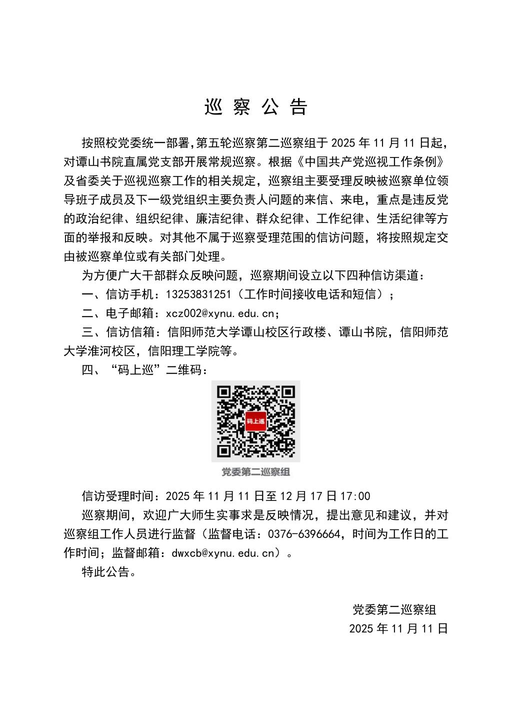 巡 察 公 告